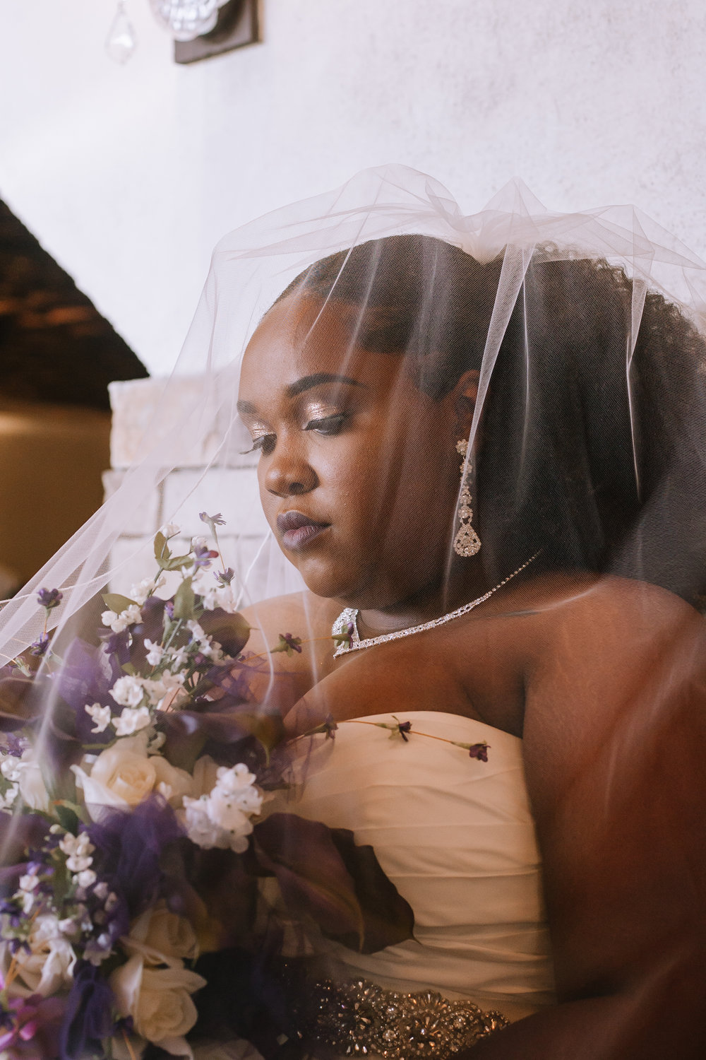 For their wedding colors, they decided on a rich royal purple as a throwback to the colors they wore to their junior prom. The couple spent a lot of time planning their bridal looks and coordinating with the wedding party. Jordan really wanted everyone’s sartorial excellence to wow their guests. “We made sure they looked just as good as we did,” said Jordan.